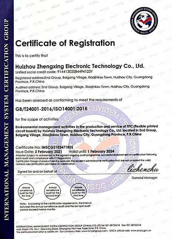 環(huán)境管理體系證書